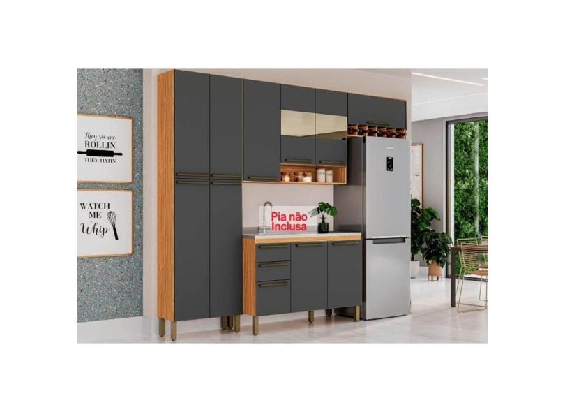 Cozinha Modulada Completa Nápoli Prime 4 Peças (2Aéreos+1Balcão+1Paneleiro) C4P66 Amendoa/Grafite - Ronipa