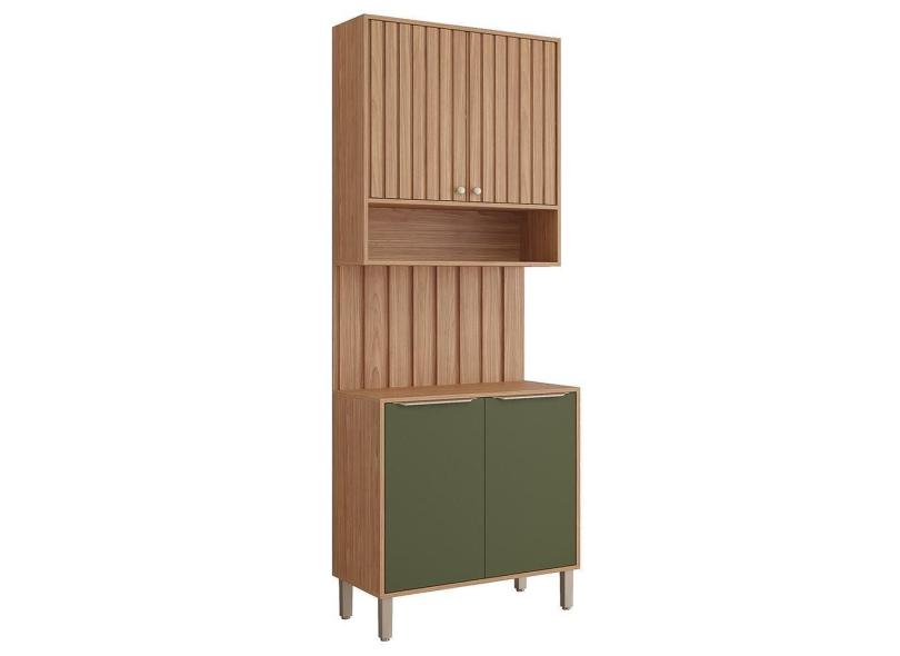 Cozinha Modulada Divina 3 Peças com Armário Aéreo, Balcão 80cm e Painel Ripado - MGM