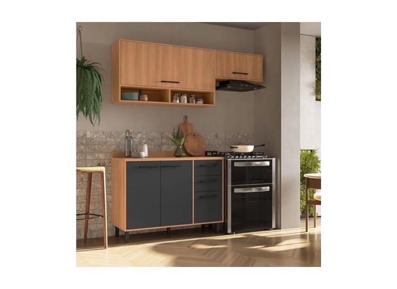 Cozinha Modulada Havana 3 Peças com Tampo 5 Portas e 2 Gavetas Rovere/Grafite