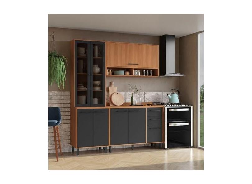 O menor preço encontrado no Brasil para Cozinha Modulada Havana 3 Peças com Tampo e Cristaleira 08 Portas e 2 Gavetas Rovere/Grafite atualmente é R$ 2.138,26.