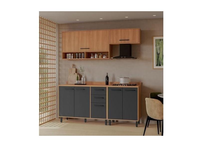 Cozinha Modulada Havana com Tampo 07 Portas e 2 Gavetas Rovere/Grafite