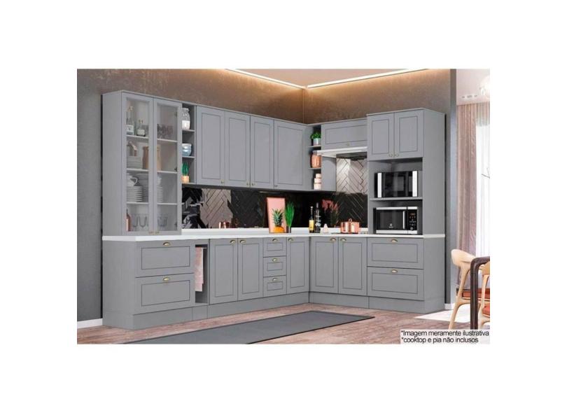 O menor preço encontrado no Brasil para Cozinha Modulada Henn Americana 14 Peças (3 Armários + 4 Balcões + 1 Paneleiro + 6 Complementos) C14P02 Cinza atualmente é R$ 5.580,89.