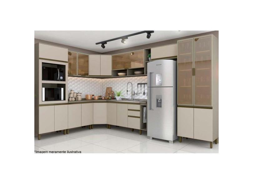 Cozinha Modulada Henn Connect 15 Peças (5 Armários + 3 Balcões + 2 Paneleiros + 5 Complementos) C15P02 Duna/Cristal