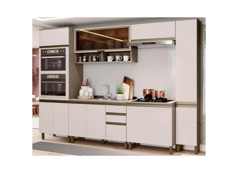 Cozinha Modulada Henn Connect 7 Peças (2 Aéreos+2Balcões+2Paneleiro+1Complemento) CPT90 Duna/Cristal-Henn