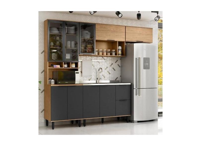 O menor preço encontrado no Brasil para Cozinha Modulada Toscana 4 Peças Mdf com Aéreo 1200 Porta de Vidro e Paneleiro Freijó/nero atualmente é R$ 1.931,54.