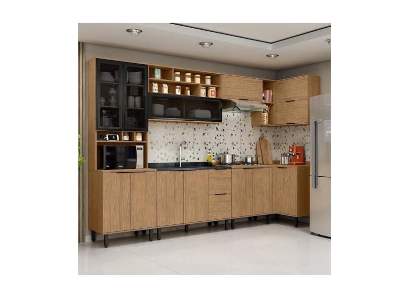 Cozinha Modulada Toscana 7 Peças Mdf com Paneleiro 1 Forno e Armários Canto Freijó