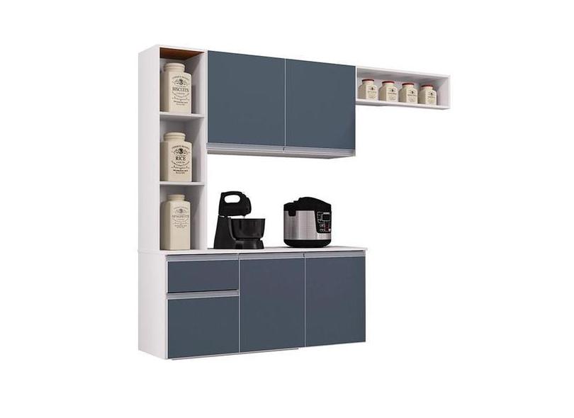 Cozinha Suspensa Com Balcão Mel 163 Cm Branco Cinza Platinum Poquema