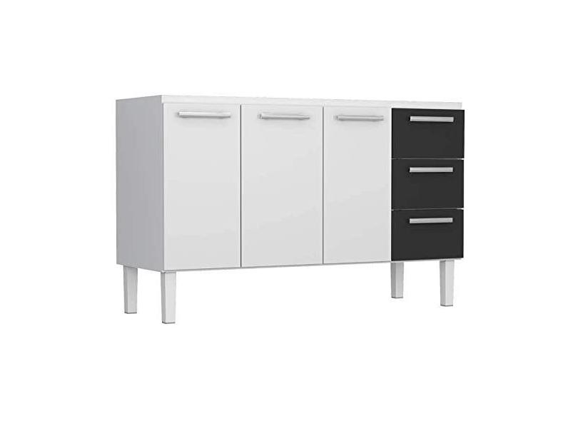 Gabinete de Cozinha Preto em Aço 144cm 3 Gavetas Venus Flat Cozimax