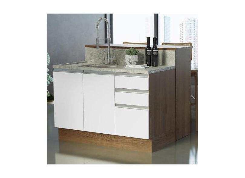 Ilha de Cozinha com Bancada e Balcão 120 cm Rustic/branco Glamy Madesa