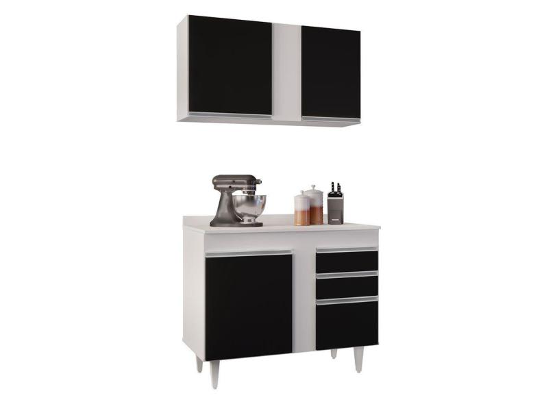 Kit Armário Aéreo Balcão 100cm Branco Preto