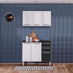 O menor preço encontrado no Brasil para Kit Balcão 3 Portas 2 Gavetas Branco com Armário Aéreo 3 Portas Preto Itatiaia Luce atualmente é R$ 899,99.
