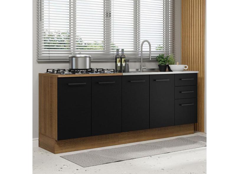 Kit Com 2 Balcões De Cozinha 3 Gavetas 4 Portas Rustic Preto