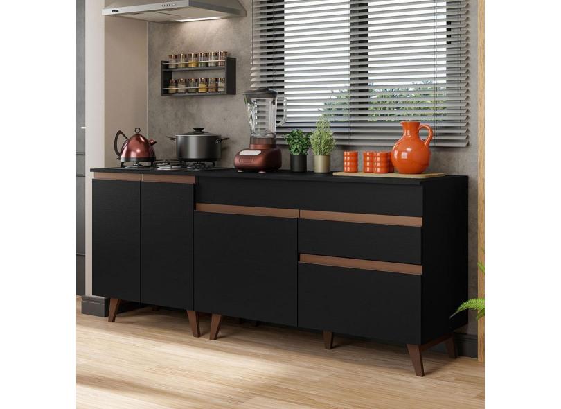 Kit Com 2 Balcões De Cozinha 4 Portas 1 Gaveta Preto Preto