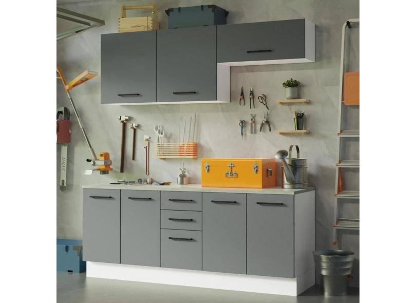 Kit com 2 Balcões e 2 Armários Aéreos Multiuso 200cm Branco/Cinza Agata Madesa