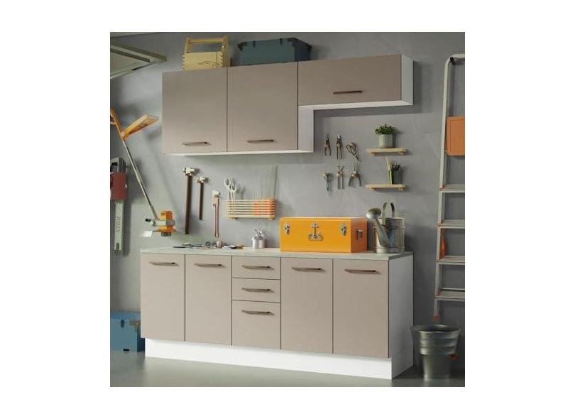 O menor preço encontrado no Brasil para Kit com 2 Balcões e 2 Armários Aéreos Multiuso 200cm Branco/crema Agata Madesa atualmente é R$ 1.798,18.