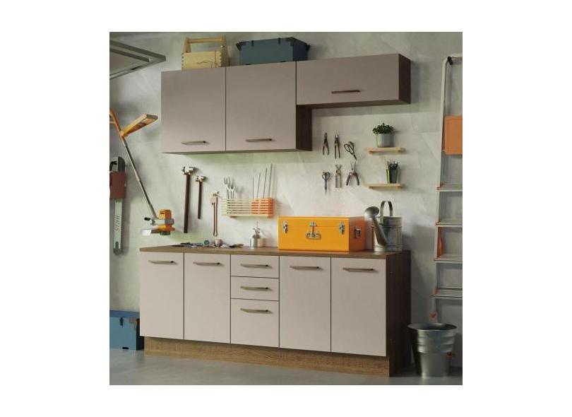 Kit Com 2 Balcões E 2 Armários Aéreos Multiuso 200cm Rustic/Crema Agat