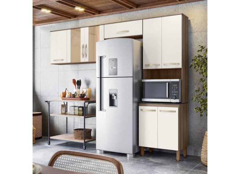 Kit Cozinha Compacta 8 Portas Fit Carvalho Marrom/Off White Cristal