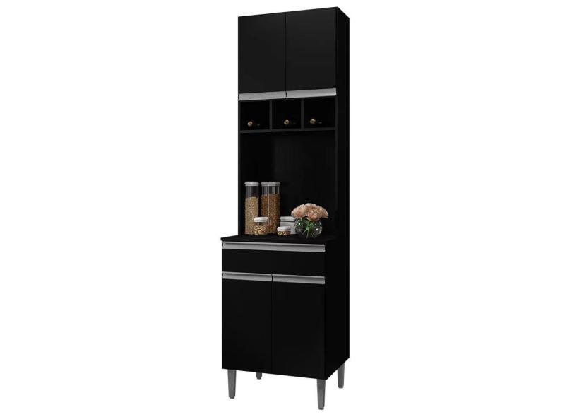 Paneleiro Duplo 61Cm Com Nicho 4 Portas 1 Gaveta Preto