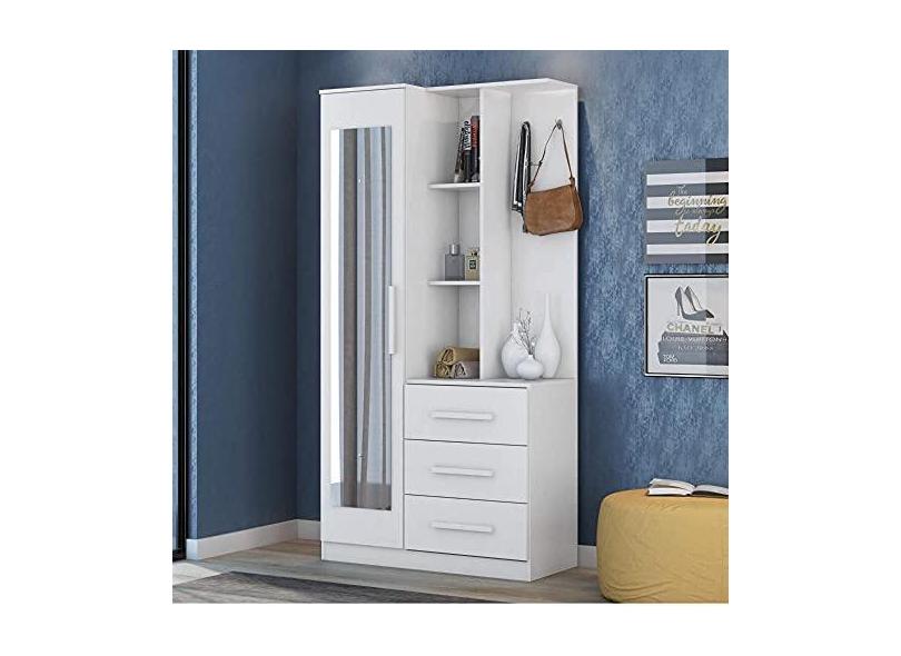 Armário Multiuso Cômoda com Espelho 1 Porta 3 Gavetas 3 Prateleiras e Nichos Brisa Demóbile