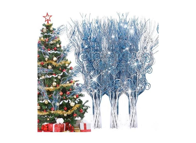 48 palhetas de árvore de Natal, enfeites de caule de baga com glitter artificial, palitos de doces de Natal falsos, galhos decorativos com glitter para árvore de Natal, guirlanda de artesanato,