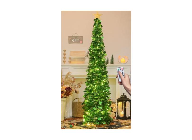 Árvore de Natal HMASYO de 6 pés com 100 luzes LED e controle remoto ve