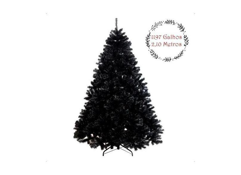 Arvore De Natal Preta 2,10M Halloween Dark 1197 Galhos Luxo - Klizz