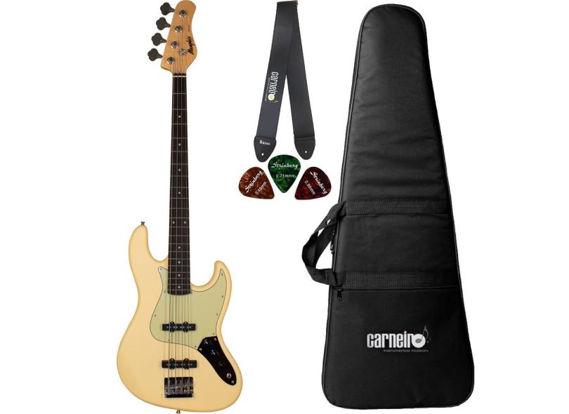 Baixo 4 Cordas Memphis Mb50 Olympic White Satin Capa Correia