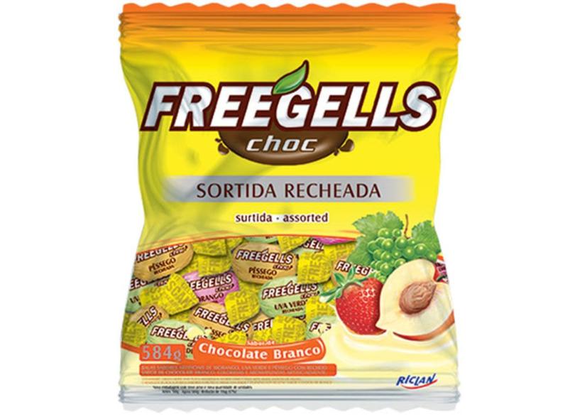 Bala Dura Recheada Chocolate e Frutas Sortidas Freegells 584g - Riclan