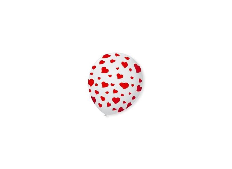 Bexiga Balões Tema Nº 9 Corações Branco e Vermelho - 25 Unid