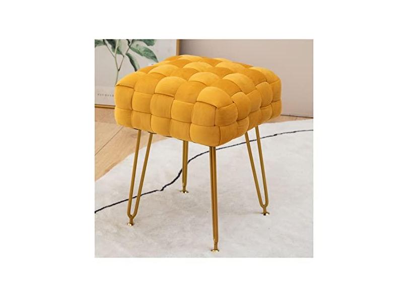 ATHUAHLR ATHUAH Assento acolchoado Mesa lateral Apoio para os pés Material de lã Quadrado Otomano Assento moderno com perna de metal dourado para sala de estar Quarto Banqueta multifuncional
