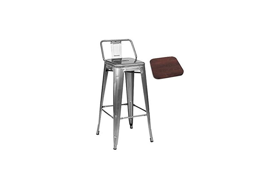 Banco de café da manhã Bancos de bar industriais 25,6/29,5 polegadas Altura do assento Bancos de jantar Cadeiras com assento de madeira e encosto alto, Banqueta de bar de altura de balcão de metal