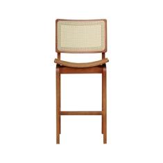 Banqueta Alta Bistrô Gus Madeira Maciça Encosto Telinha Assento Anatômico Madeira Amendoa