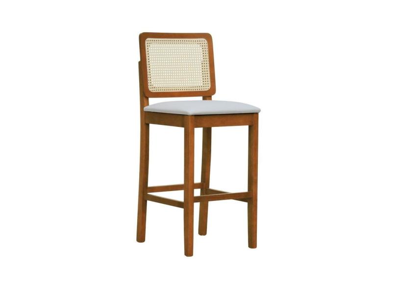 Banqueta Alta Bistrô Lyon Madeira Maciça Encosto Telinha Natural Assento Estofado Sintético Amêndoa/Bege