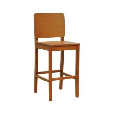 Banqueta Alta Bistrô Quéops Madeira Maciça Encosto Anatômico Assento Ripado Amendoa