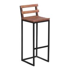 Banqueta Alta Com Encosto Anatômico Ferro E Madeira Maciça