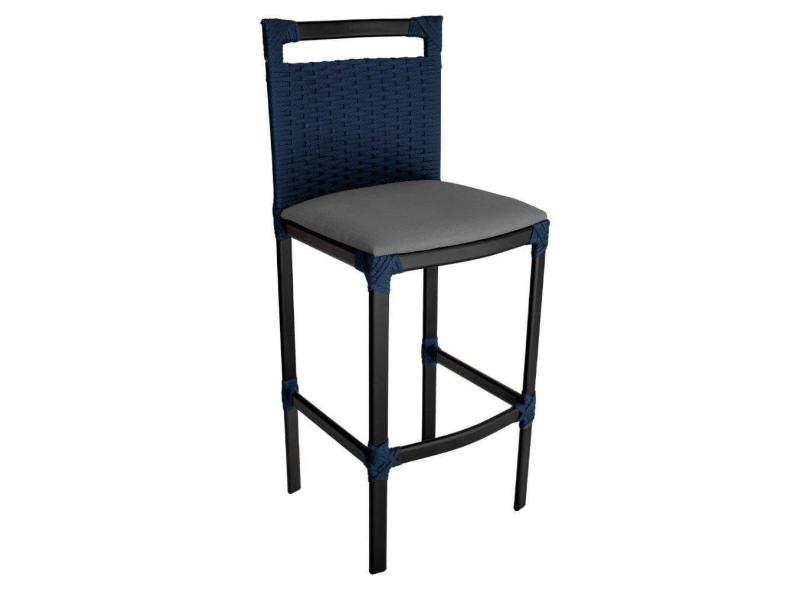 Banqueta Alta Vigor Em Alumínio E Corda Náutica Azul Azul-cinza