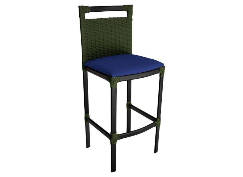 Banqueta Alta Vigor Em Alumínio E Corda Náutica Verde Verde Com Azul