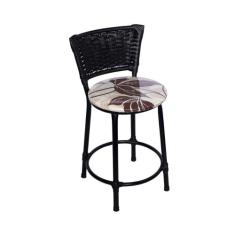 Banqueta Baixa Junco com Assento Floral Marrom Fortmix