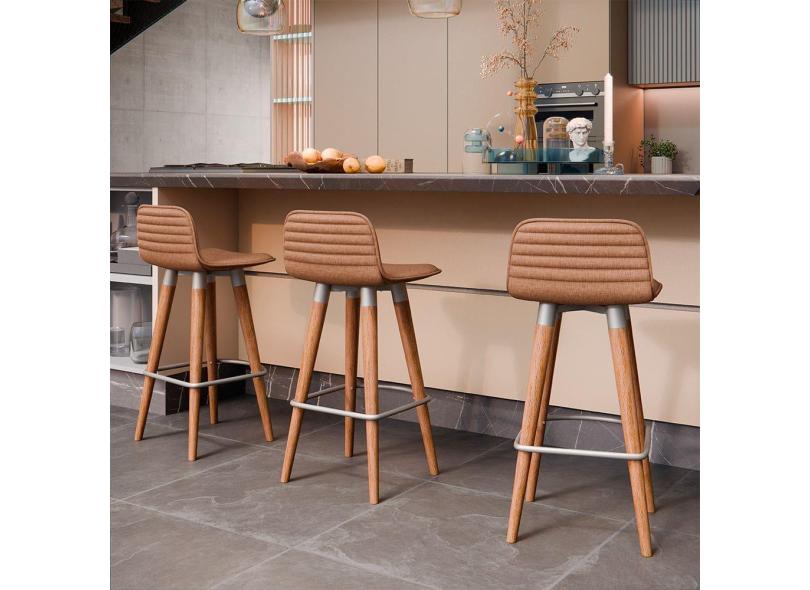 Banqueta Baixa Linea Aço Champanhe Assento Terracota