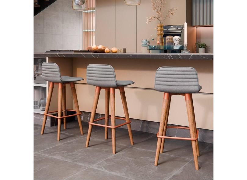 Banqueta Baixa Linea Aço Cobre Assento Assento Cinza