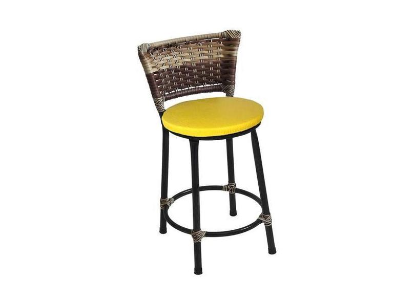 Banqueta Baixa Preta com Encosto Junco Capuccino Assento Amarelo - For