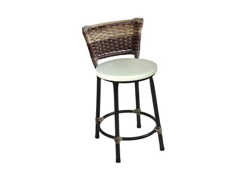 Banqueta Baixa Preta com Encosto Junco Capuccino Assento Branco - Fort