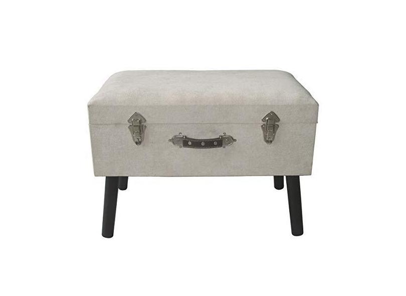 BANQUETA BAU DE MADEIRA E TECIDO AVELUDADO CINZA