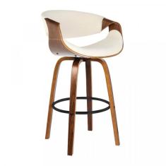 Banqueta com Apoio e Base de Madeira Nicole Rivatti Creme