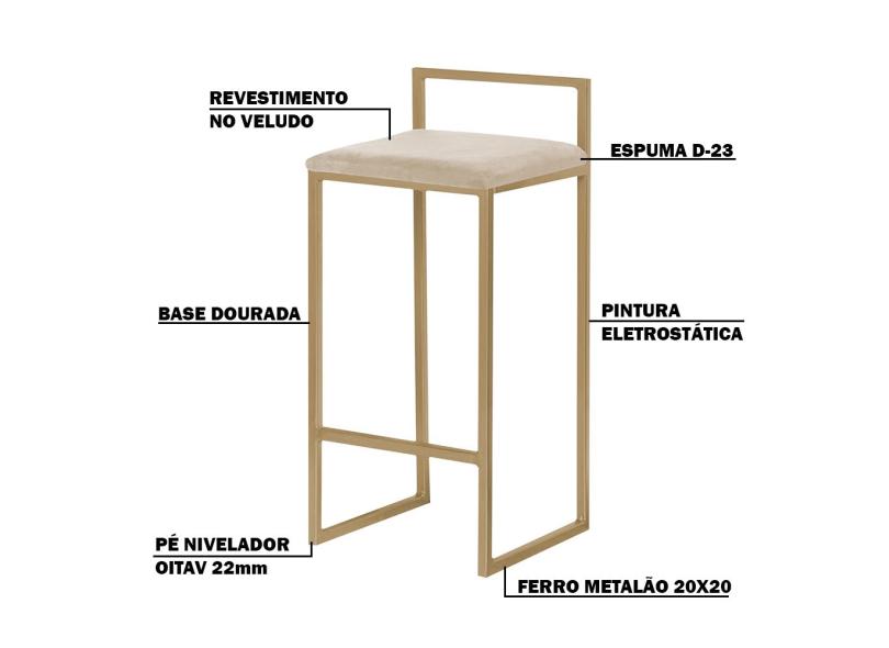 Banqueta Decorativa Jasmine Base Gold Veludo Bege