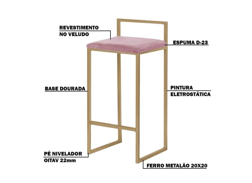 Banqueta Decorativa Jasmine Base Gold Veludo Rosê