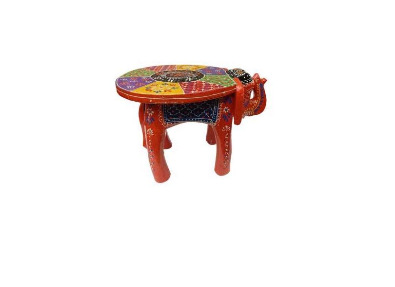 Banqueta - Elefante - Madeira - Pequeno - Pintado à Mão - Preto e Col