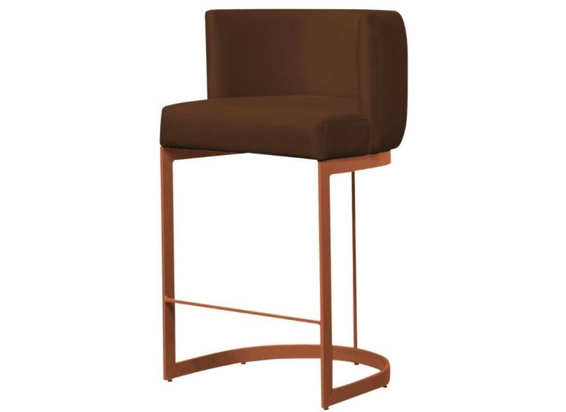 Banqueta Estofada Emily Base Bronze Veludo Marrom - Montanaris Decor