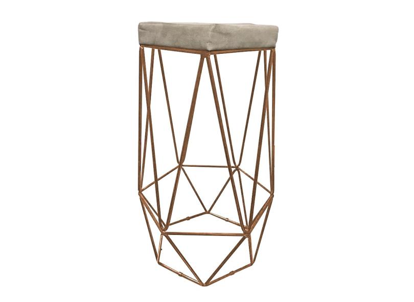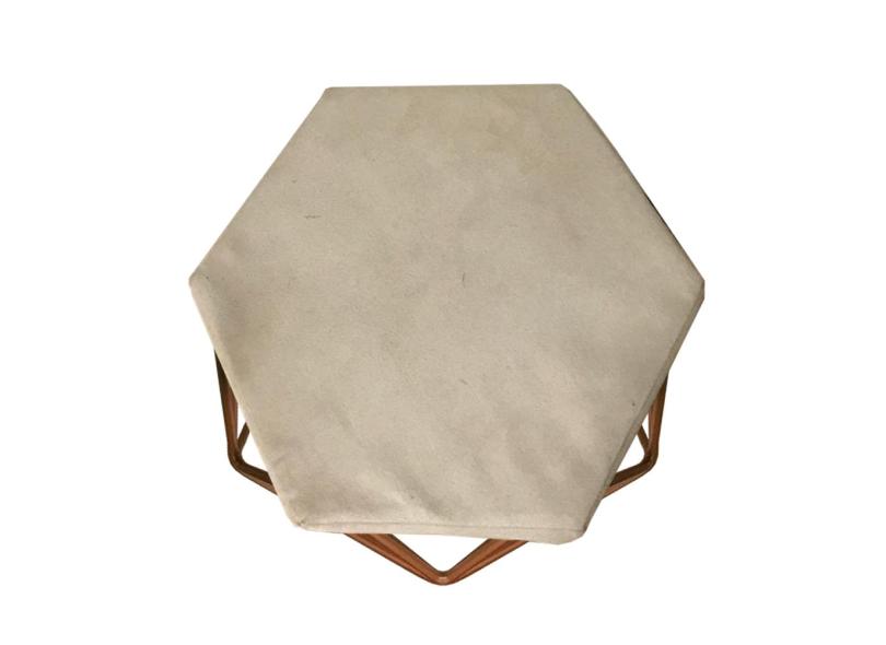 Banqueta Hexagonal Aramado Cobre Suede Bege