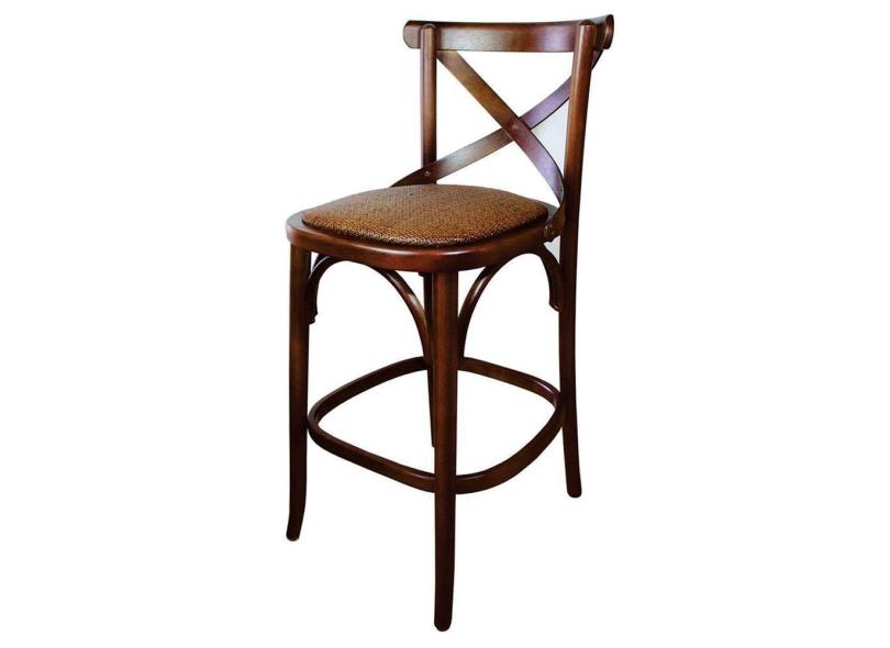 Banqueta Madeira Espanha Assento em Rattan Laca Tabaco